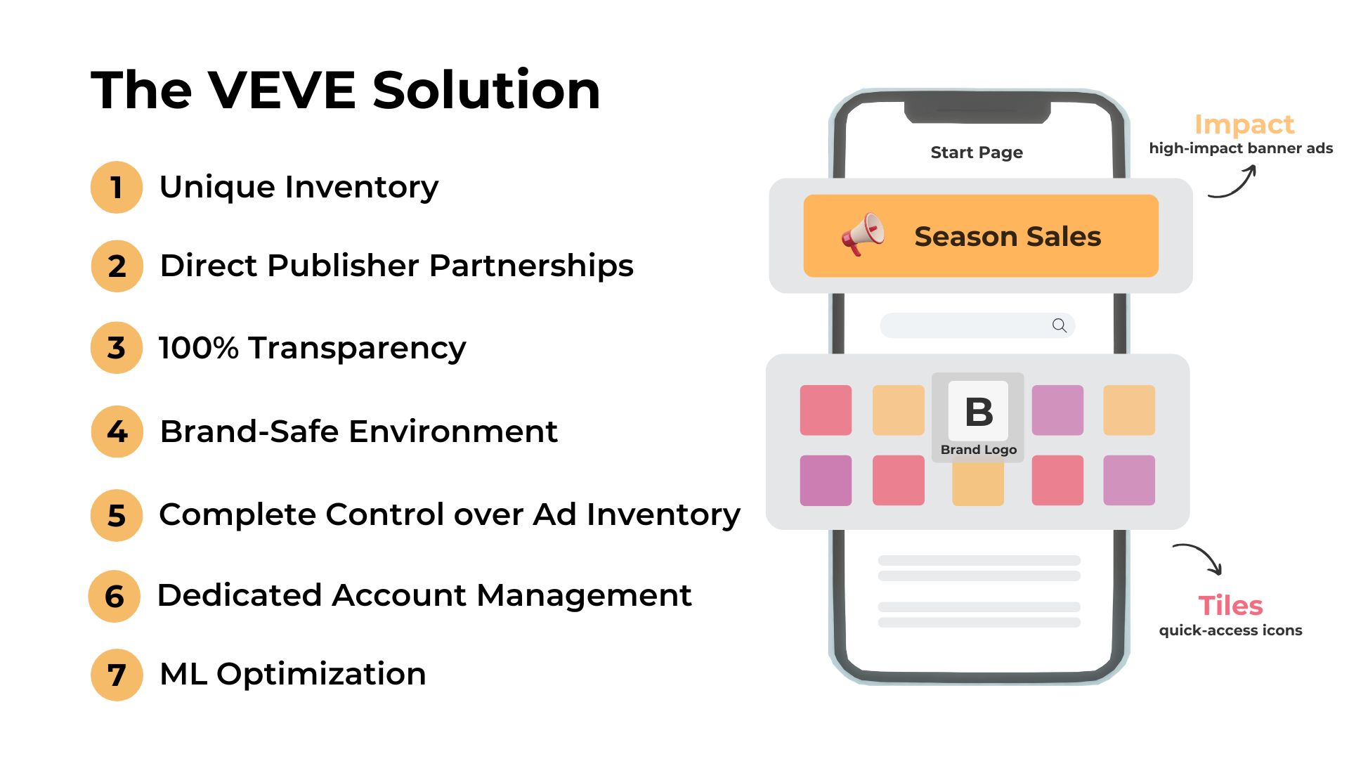 VEVE offers unique and incremental browser homepage inventory. This exclusive, high-visibility inventory ensures your brand stands out and captures user attention in an organic and direct manner.