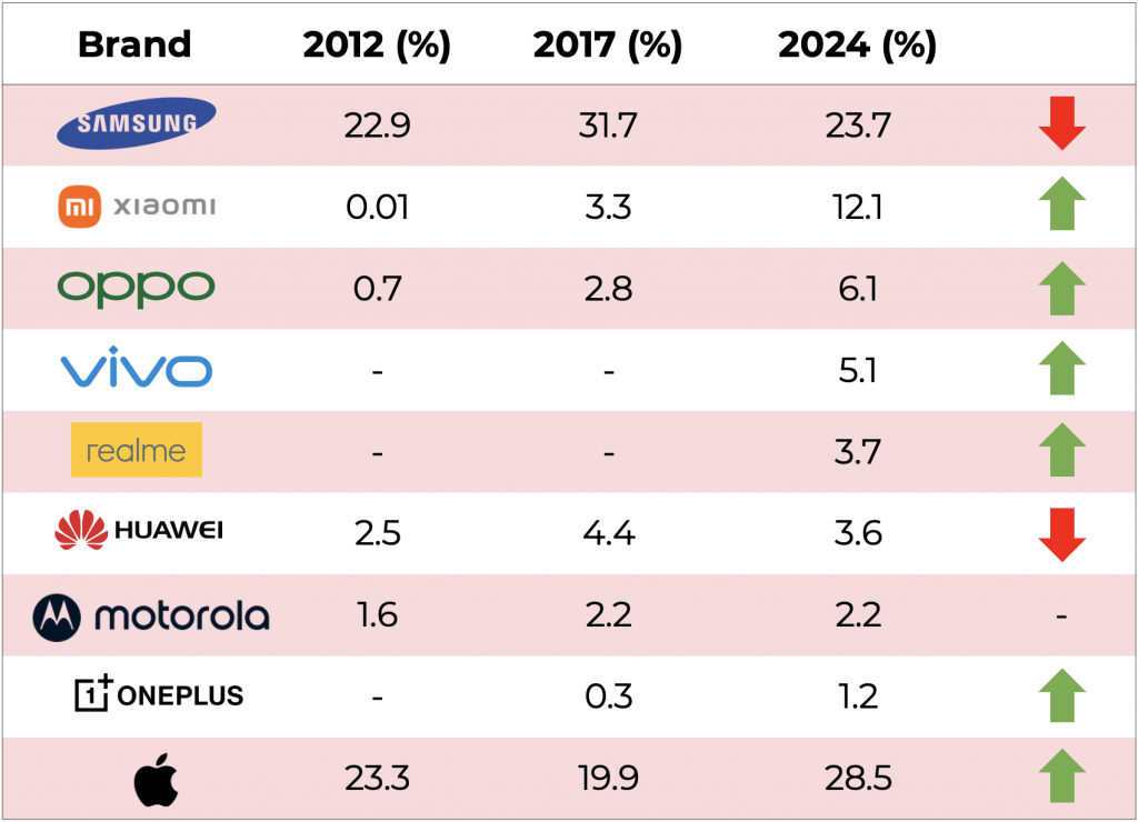 On the contrary, over the past decade, new-age smartphone manufacturers have slowly but surely gained a sizable market share, emerging as a powerful alternate. Since 2017, Original Equipment Manufacturers (OEMs) like Xiaomi, OPPO, vivo, Huawei, OnePlus, and Realme amongst others have collectively seen an increase of close to 20% in the global smartphone market share, building a significant user base presenting brands with another avenue to reach incremental audiences all across the world. 2023 alone saw over 1.3 billion smartphones shipped with these OEMs leading the growth.