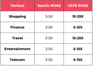 - Achieve 3x higher ROAS compared to Search: VEVE enables brands to connect with high-intent users pre-search, on the start pages of browsers and apps. This helps reach users at a moment when they are primed to take action, capturing them crucially before they plunge into the crowded search environment, resulting in significantly better returns across key verticals such as shopping, finance, travel, entertainment, and telecom.